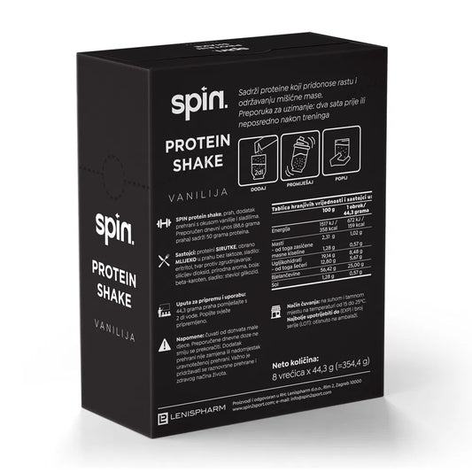 SPIN protein shake, prah za pripremu instant napitka. Sadrži proteine koji doprinose rastu i održavanju mišićne mase.